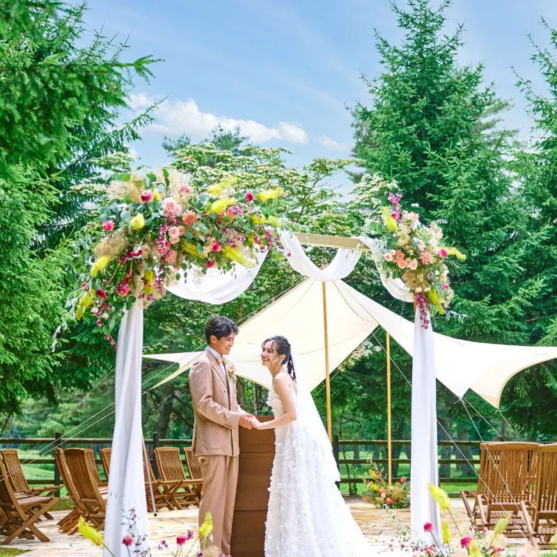 涼やかな風が吹き抜ける避暑地軽井沢で、夏とは思えない快適さと心に残る特別なウエディングを。ゲストも心置きなく楽しめる軽井沢のベストシーズン!【料飲15%OFF/衣裳1着目40%,2着目30%OFF】